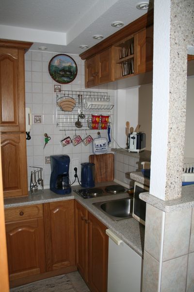 Offene Küche, komplett mit Kühlschrank, Mikrowelle,